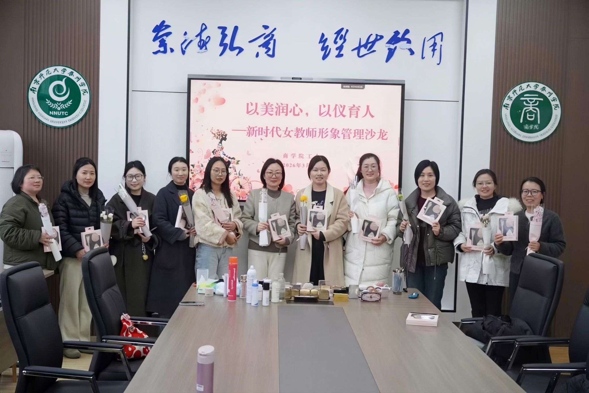在“三八”国际妇女节来临之际,为凝聚巾帼力量,提升女教师职业形象素养,让优雅得体的职业形象成为无声的教育语言。3月4日下午,商学院工会在文科楼323会议室举办“以美润心,以仪育人——新时代女教师形象管理”沙龙。活动现场,主讲老师围绕女教师日常职业化妆展开实用性的讲解与实操指导,从底妆打造、眉眼修饰到唇色选择、定妆技巧,针对不同肤色、五官特点,拆解适配高校女教师职业场景的简约精致化妆步骤,分享自然、持久又贴合工作氛围的化妆小窍门。...
