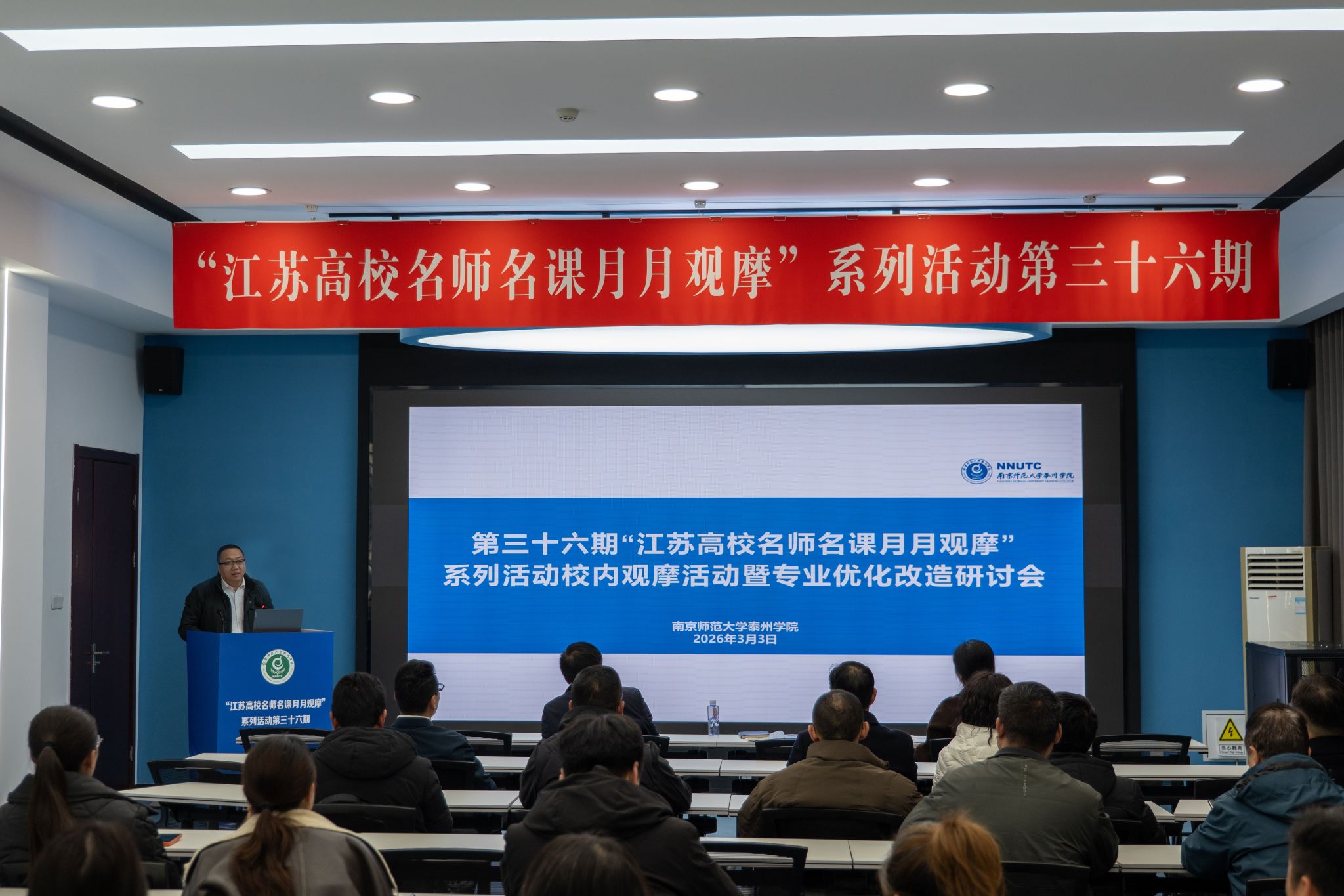 为深入贯彻落实立德树人根本任务,扎实推进专业内涵建设与教学改革,我校3月3日下午在综合实验楼A106召开第三十六期“江苏高校名师名课月月观摩”系列活动校内观摩会暨专业优化改造研讨会。南京师范大学泰州学院副院长朱竹青、南京师范大学教务处副处长王丽萍出席会议。各二级学院院长、书记、副院长、副书记及相关部门负责人参加会议。会议由教务处处长严从华主持。分享经验,共话产教融合新路径会议第一阶段为“名师名课月月观摩”...